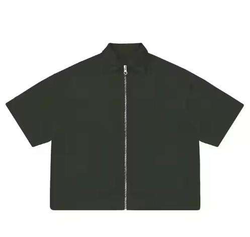 Custom Vintage Zip-Up Kraag Oversized Sweat Zip Korte Mouw Werk Heren Crop Top Boxy Fit T-Shirt